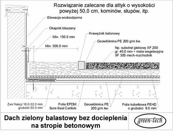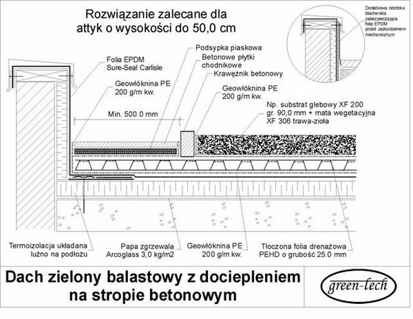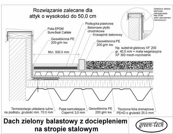 DETALE INSTALACJI W niniejszym rozdziale przedstawione zostaną typowe rozwiązania detali spotykanych powszechnie na dachach zielonych. Niektóre rozwiązania przedstawione są opcjonalnie i w gestii projektanta lub wykonawcy jest zastosowanie optymalnego rozwiązania w danej sytuacji. Jeżeli przedstawione detale nie są w stanie pomóc w opracowaniu jakiegoś konkretnego detalu projektowanego lub wykonywanego pokrycia dachowego prosimy o skontaktowanie się z działem technicznym firmy Top-Tech. ![]() ![]() ![]() ![]() ![]() ![]() ![]() ![]() ![]() |